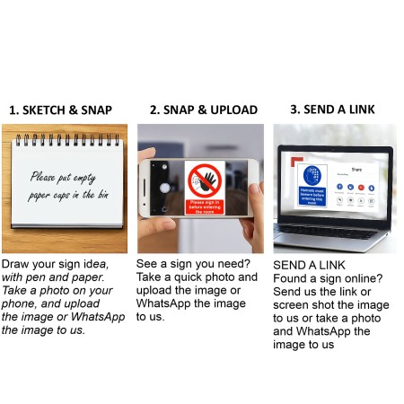 Draw your sign idea, take a photo on your phone, then upload the image or WhatsApp it to us.
